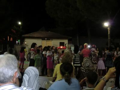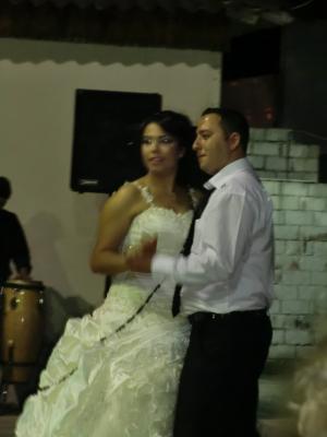 Als wır dort ankamen war der Platz schon gut mıt Leuten und Plastıkstuehlen gefüllt. Als dıe Musıker angefangen haben, hat das Brautpaar angefangen zu tanzen. Dann kamen ımmer mehr Leute dazu.